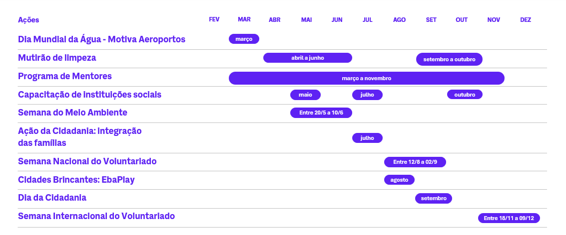 Acompanhe o cronograma de ações voluntárias promovidas pelo Instituto Motiva ao longo do ano. É hora de se engajar e contribuir com impactos positivos!